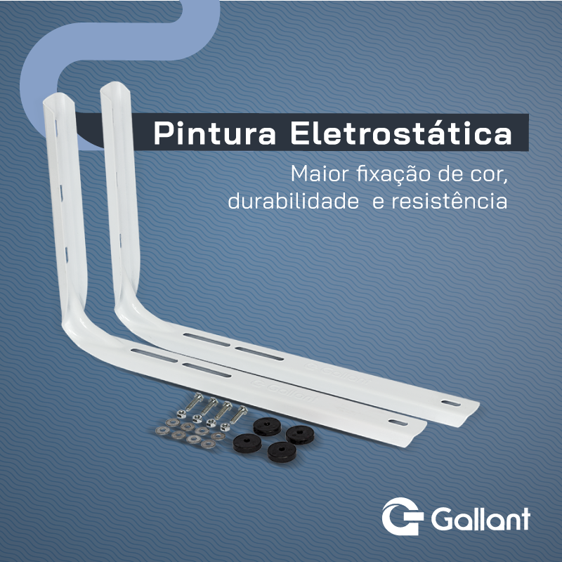 Portanto, observe a qualidade do suporte que você está adquirindo e escolha o melhor, escolha Gallant. Todos os suportes para ar-condicionado Gallant contam com 5 anos de garantia e acompanham kit de fixação, que contém 4 parafusos, 4 porcas, 8 arruelas e 4 amortecedores de PVC.